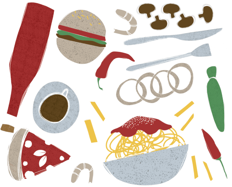 Per dargli un’identità, ho pensato a delle illustrazioni minimaliste, del tipo hand drawn, con una palette di colori piuttosto tenue visto lo sfondo rosso. Ho declinato le illustrazioni in diversi formati e abbiamo poi usato dei timbri customizzati per personalizzare tovagliette e contenitori per panini e patatine. Lucette di Natale come must e t-shirt in coordinato.