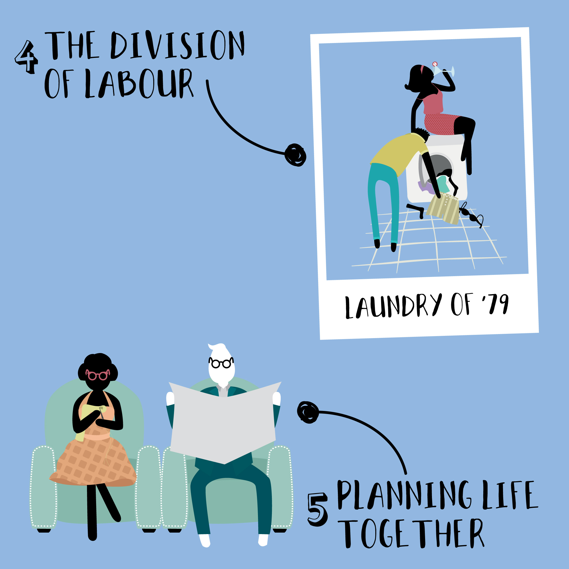 illustrazioni fumettate e amichevoli,